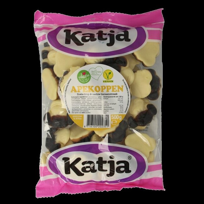 Offrez-vous, à vous et à votre famille, un moment de pur plaisir. Envie de ce goût unique et délicieux qui vous replonge en enfance ? Avec le sachet Katja Apenkoppen de 500 g, savourez en toute sérénité l'équilibre parfait entre la réglisse douce et la banane fruitée.