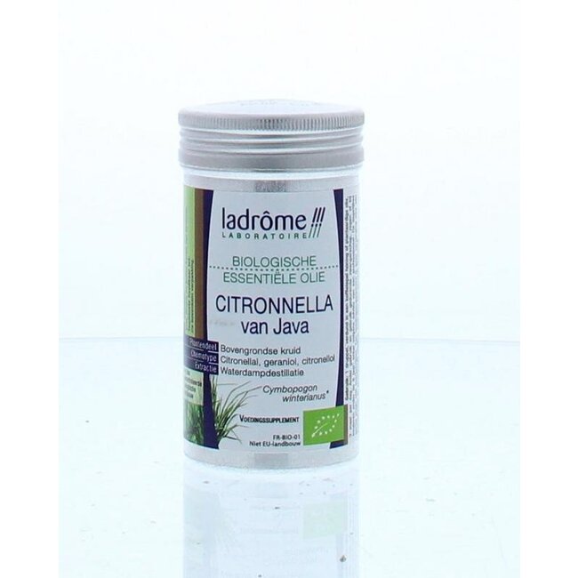 - Composition (pour 3 gouttes) : 0,12 ml d'huile essentielle de citronnelle de Java biologique (Cymbopogon winterianus)