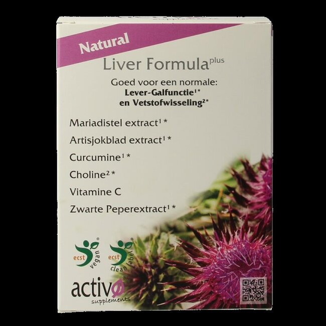 Extrait de chardon-marie, extrait de feuille d'artichaut, curcumine, choline, vitamine, mélange d'extraits de riz (Oryza sativa L.), mélange d'extraits de riz (Oryza sativa L.), extrait de poivre noir, gélule végane hypromellose.