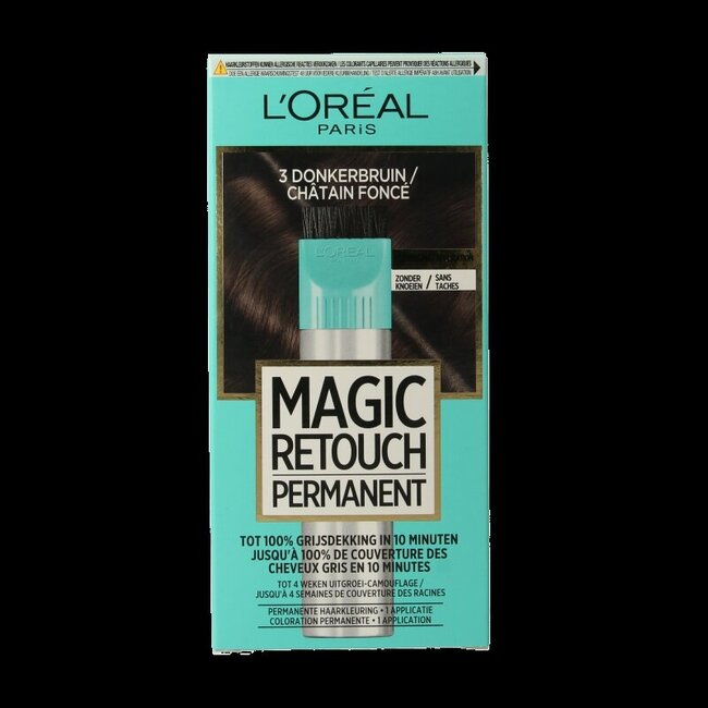 Les repousses indésirables appartiennent au passé ! Avec la Coloration capillaire permanente L'Oréal Paris Magic Retouch n° 3 brun foncé, vous optez pour la solution intelligente. Elle couvre sans effort jusqu'à 100 % des cheveux gris en seulement 10 minutes, pour un résultat magnifique et naturel qui s'harmonise parfaitement avec votre couleur de cheveux. Profitez jusqu'à 4 semaines d'une apparence soignée et d'une confiance retrouvée.