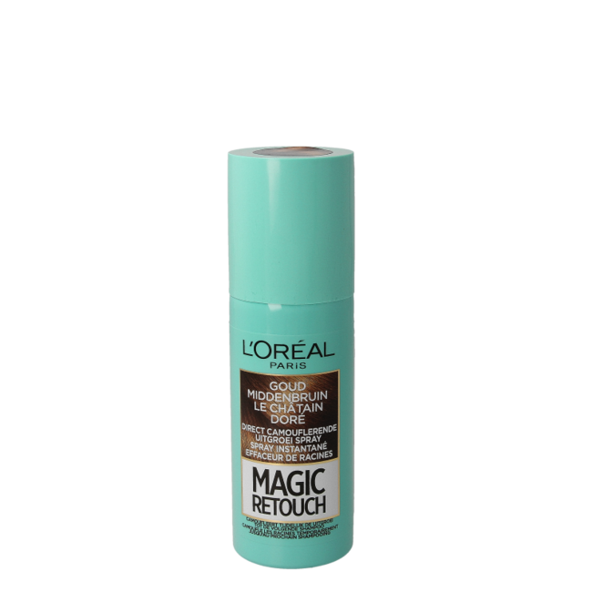 Le spray Magic Retouch doré camoufle instantanément, sèche en 1 minute et se fond parfaitement à votre couleur. Retrouvez immédiatement votre assurance !