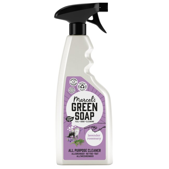 Le spray nettoyant multi-usages Marcel's Green Soap lavande & romarin permet de nettoyer votre environnement sans utiliser de produits chimiques agressifs ou de parfums synthétiques. Ce produit privilégie le bien-être et le respect de la nature.