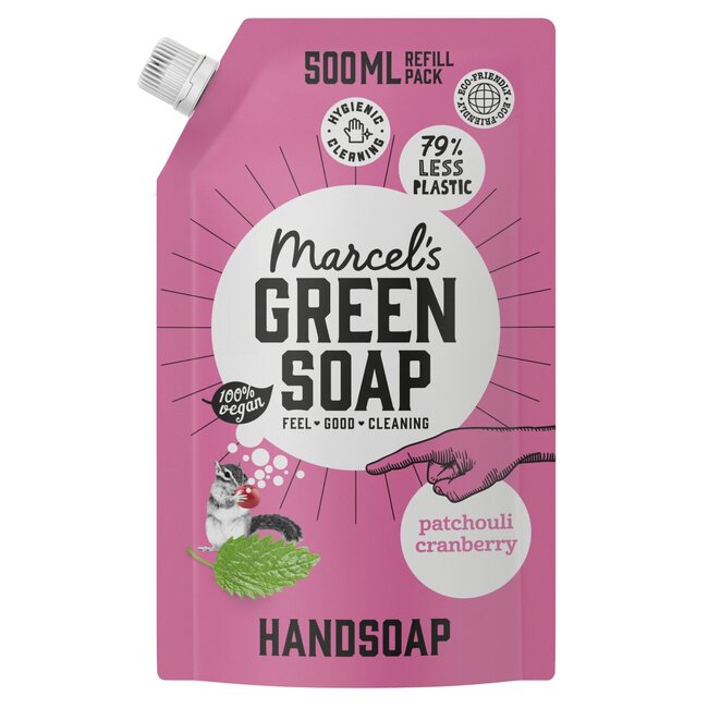 Lassé des savons qui dessèchent la peau ou des prix élevés ? Choisissez la recharge Marcel's Green Soap : des mains soyeuses pour toute la famille, au parfum de patchouli et de canneberge. Formule biodégradable à au moins 97 % et emballage en plastique 100 % recyclé.