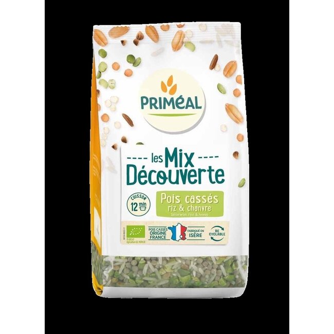 Le mélange Primeal pois cassés, riz et chanvre bio permet de préparer en 12 minutes un plat riche en protéines adapté à un mode de vie équilibré. Ce produit privilégie la qualité biologique et la simplicité de préparation pour toute la famille.