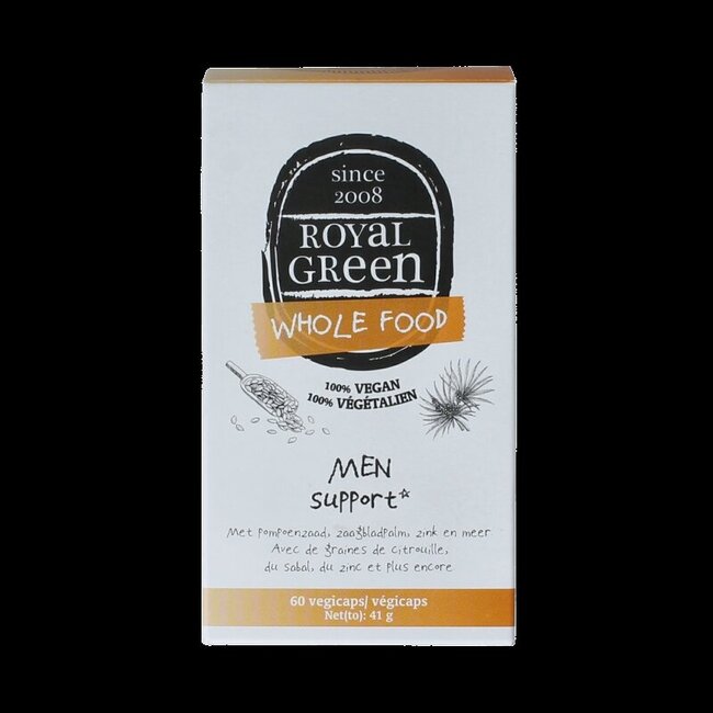Royal Green Men Support est une formulation unique à base d'herbes et de plantes. Contient notamment des graines de courge, du palmier nain et du zinc.