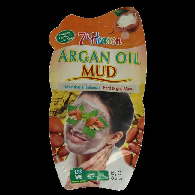 Le masque à la boue et à l'huile d'argan Montagne 7th Heaven, formulé avec de l'huile d'argan et des baies d'açai, nettoie en profondeur, hydrate et adoucit la peau.