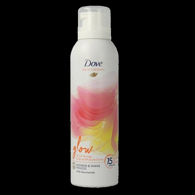 La mousse de douche et de rasage Dove Glow est enrichie en niacinamide pour favoriser l'éclat de la peau et renforcer la barrière cutanée. Elle dégage un parfum d'orange sanguine et de rhubarbe. Sa texture onctueuse permet une utilisation combinée pour le nettoyage du corps et le rasage, convenant à l'usage familial.