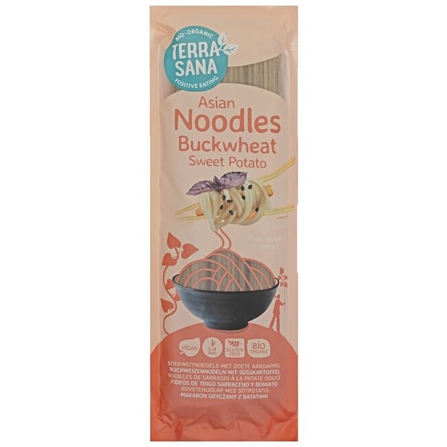 Vous recherchez des nouilles savoureuses, biologiques et sans gluten ? Découvrez les nouilles de sarrasin à la patate douce TerraSana. Préparez un repas sain et nutritif en seulement 3 à 4 minutes. Naturelles et idéales pour un mode de vie conscient et pour toute la famille, ces nouilles offrent une qualité biologique alliant bien-être et saveur.