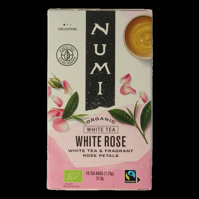 Découvrez le thé blanc à la rose blanche bio de Numi : un moment de détente pure et délicate. Ne faites plus de compromis sur le goût ou la qualité. Ce mélange biologique de thé blanc raffiné et de pétales de rose délicats offre une expérience apaisante. Un choix conscient et savoureux. Profitez de chaque gorgée bienfaisante.