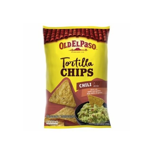 Les Tortilla Chips Chili d'Old El Paso sont des chips de maïs croustillantes assaisonnées au piment. Elles sont adaptées pour l'apéritif ou comme collation. Ce produit peut être consommé seul, partagé ou accompagné d'une sauce pour une expérience Tex-Mex.