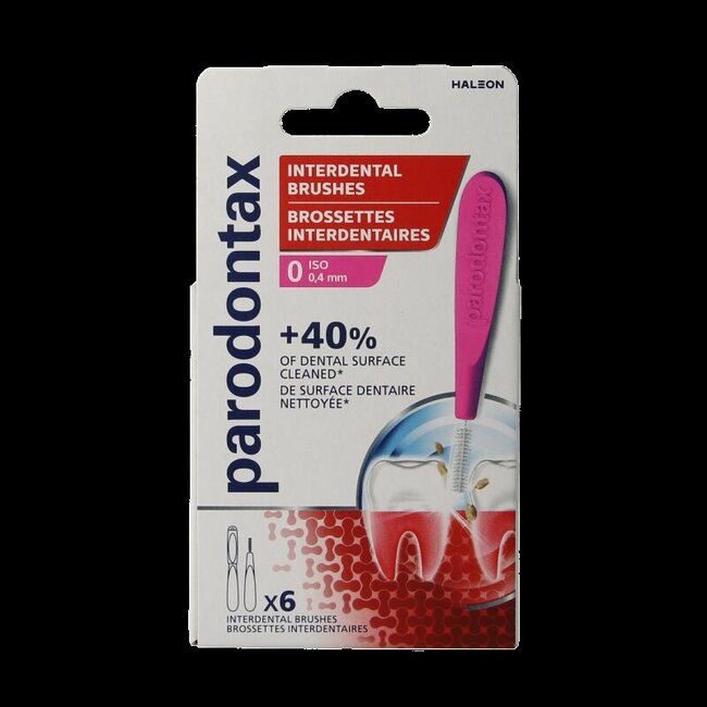 Les brossettes interdentaires Parodontax taille 0 (6 pièces) assurent un nettoyage profond et doux pour une sensation de fraîcheur en bouche. Ces soins bucco-dentaires de qualité professionnelle sont présentés dans un emballage sans plastique. VitAdvice propose ces solutions pour l'hygiène dentaire quotidienne.