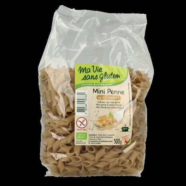 - Type : Mini penne de riz complet biologique sans gluten
