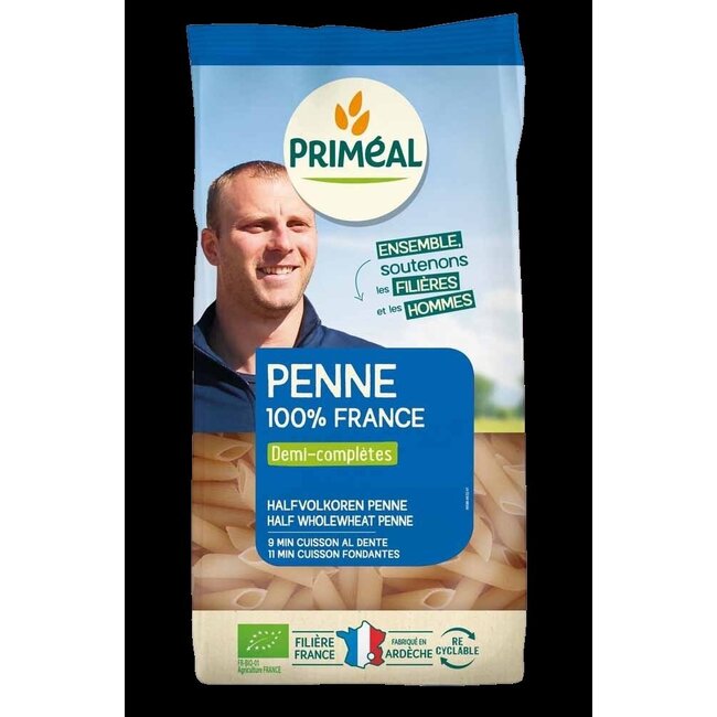 Penne semi-complètes bio Priméal : une alimentation saine, abordable et biologique. Profitez de ces pâtes savoureuses et riches en fibres, idéales pour toute la famille. Un choix judicieux et durable pour votre quotidien. Mangez avec plaisir et sérénité.
