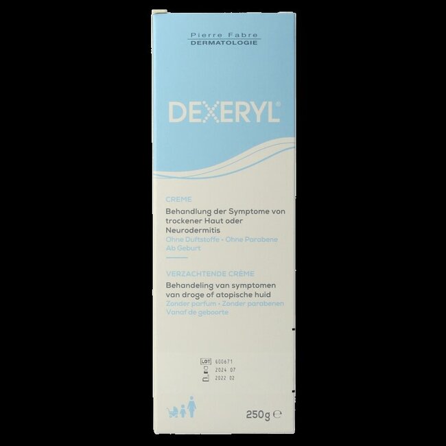 Dexeryl traite les symptômes de la sécheresse cutanée (xérose), de la dermatite atopique, de l'ichtyose et de l'érythème consécutif à une radiothérapie. Sa formulation aide à retrouver une peau hydratée et douce.