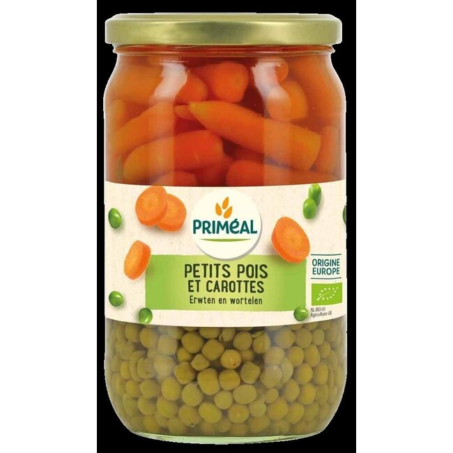 petits pois et carottes biologiques Primeal offrent naturel et praticité. Prêts rapidement, ils conviennent à toute la famille. Une qualité sélectionnée par VitAdvice pour un mode de vie vital, expédiée de manière durable. Votre choix santé !