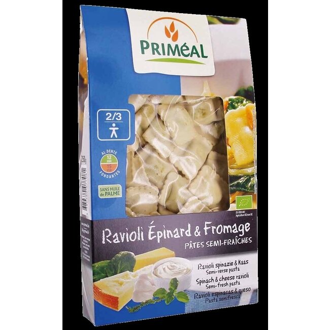 Découvrez les Ravioli épinards fromage bio de Primeal : votre choix judicieux pour une expérience gustative authentique. Ces pâtes semi-fraîches biologiques combinent la qualité supérieure du frais avec la commodité d'une cuisson rapide. Vous profitez sans effort d'un repas de qualité qui plaira à toute la famille.