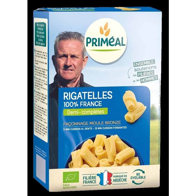 VitAdvice : votre bien-être au centre. Primeal Rigatelle pâtes semi-complètes bio (400 g) : un choix durable pour des repas sains et riches en fibres. Qualité biologique de France. Le bien-être accessible à toute la famille.