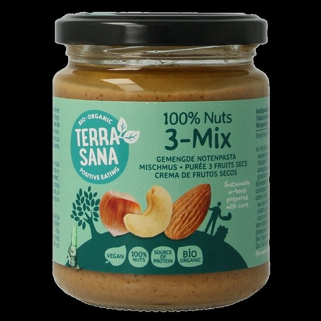 La purée d'oléagineux sans arachides idéale pour tous. La purée de 3 noix biologique de TerraSana (noix de cajou, noisettes, amandes) apporte une énergie pure. Sélectionnée par VitAdvice : une qualité supérieure à un prix juste. Un choix responsable et sans plastique pour un mode de vie conscient. Retrouvez votre vitalité.