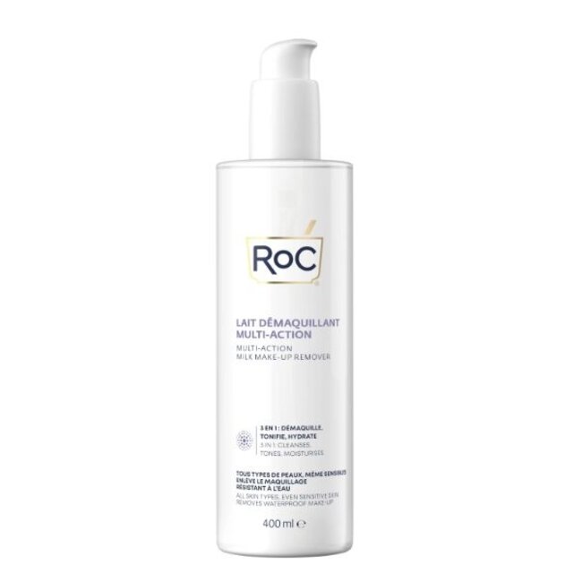 Découvrez le Lait Démaquillant Multi-Action ROC : votre solution 3-en-1 pour une peau éclatante. Il élimine sans effort le maquillage waterproof, tonifie et hydrate pendant 24 heures. Votre peau est instantanément fraîche, souple et confortable.