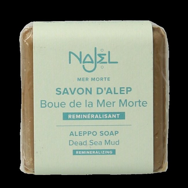 Votre peau est terne ou sujette aux imperfections ? Découvrez le savon d'Alep exfoliant Najel à la boue de la Mer Morte : 100 % naturel, à base d'huile d'olive. Il nettoie en profondeur pour une peau soyeuse et un confort éclatant.