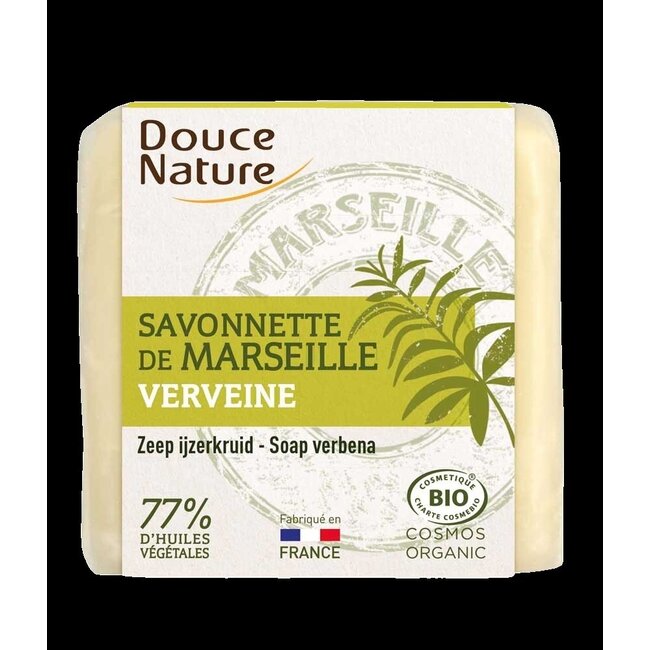 Le savon de Marseille Douce Nature à la verveine bio nettoie la peau en douceur. Enrichi en verveine tonifiante, ce savon biologique apporte un soin nourrissant et évite les sensations de tiraillement. Il convient à l'hygiène quotidienne de toute la famille.