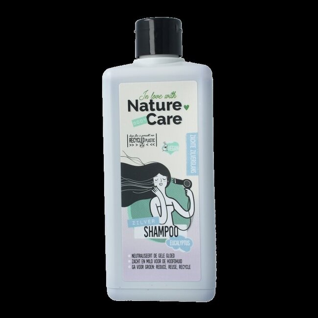 Nature Care Shampoo zilver Nature Care Zilver Shampoo (Eucalyptus) reinigt en verzorgt zacht en is mild voor de huid. Zilver shampoo neutraliseert de gele gloed in blond (geverfd), grijs of wit haar en frist de kleur weer op. Het effect is snel zichtbaar!