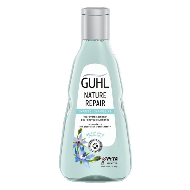 Offrez à vos cheveux le soin qu'ils méritent, pour toute la famille ! Le shampooing Guhl Nature Repair répare en profondeur et apporte de la brillance grâce à l'huile de bourrache et à la vitamine E. Chez VitAdvice, 30 % moins cher, sans plastique. Vos cheveux méritent notre expertise !