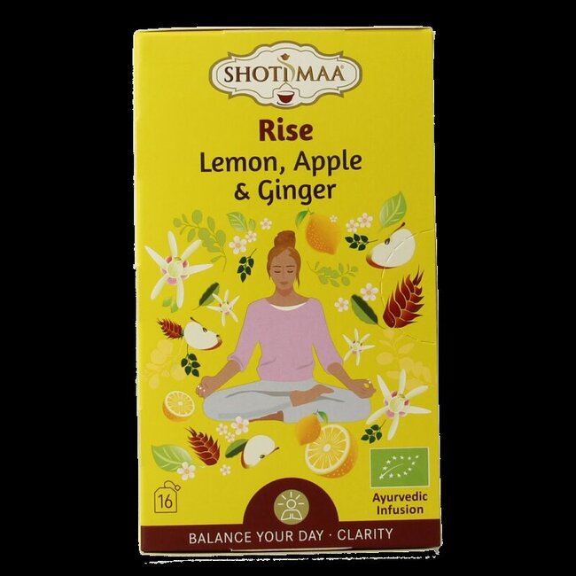 Manque d'énergie ? Optez pour un élan naturel. Shoti Maa Rise bio est une infusion biologique sélectionnée avec soin, composée de gingembre et d'hibiscus. Retrouvez une sensation de fraîcheur et de concentration. Une qualité supérieure à un prix juste, dans un emballage sans plastique. Votre bien-être conscient, avec la confiance de VitAdvice.