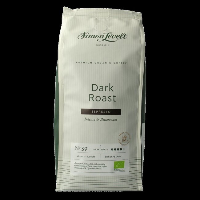 Offrez-vous le meilleur. L'espresso Simon Levelt N39, à torréfaction foncée biologique, constitue votre moment de bien-être quotidien. Découvrez la saveur profonde et riche du robusta d'Amérique latine et d'Ouganda. Un choix judicieux, économique et conscient pour votre vitalité et votre sérénité. Profitez d'un savoir-faire artisanal à chaque tasse.