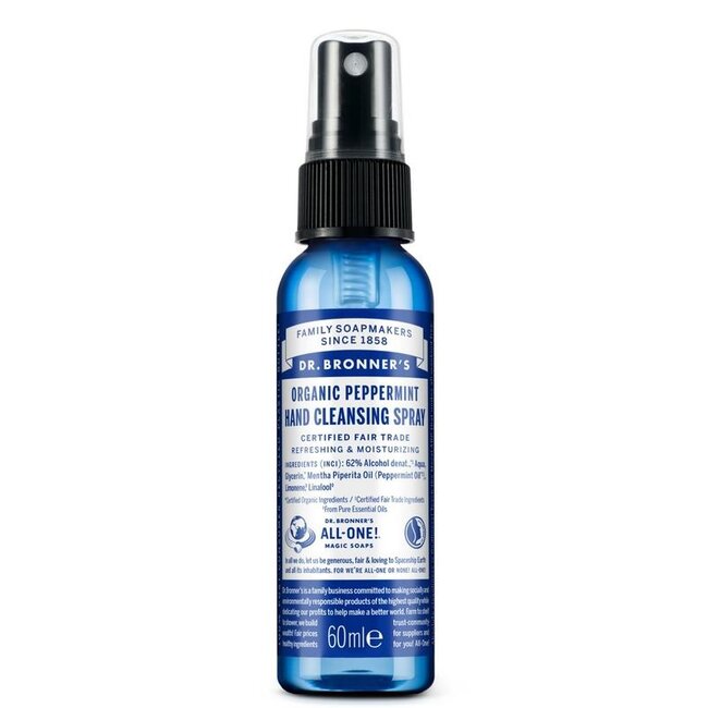 Des mains toujours propres et soignées ? Le spray pour les mains à la menthe poivrée Dr. Bronner's offre une hygiène douce et efficace instantanément, sans eau. Il ne laisse aucune sensation collante. Formulé avec 62 % d'alcool biologique issu du commerce équitable et de l'huile essentielle de menthe poivrée rafraîchissante. Approuvé par des experts, il convient à toute la famille. Un choix judicieux pour une qualité supérieure à un prix juste.