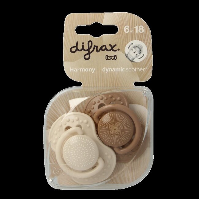 Découvrez la sucette Difrax Lovi Harmony pour les 6-20 mois, le choix réfléchi pour les parents exigeants. Cette sucette dynamique imite le mamelon maternel grâce à une téterelle composée de plusieurs couches de silicone de différentes épaisseurs. L'extrémité de la sucette suit le rythme naturel de succion de votre bébé, ce qui préserve son réflexe et garantit une acceptation élevée. Là où votre bébé pouvait se montrer agité auparavant, il profite désormais d'une expérience familière et apaisante.