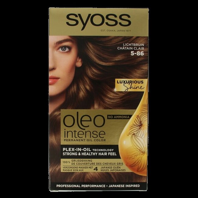 Découvrez Syoss Color Oleo Intense 5-86 châtain clair : la solution pour une couverture à 100 % des cheveux blancs et une brillance riche et éclatante. Sa formule unique à l'huile sans ammoniaque, enrichie de la technologie PLEX-IN-OIL et de 4 huiles japonaises, pénètre en profondeur, nourrit intensément vos cheveux et assure un résultat soyeux et résistant. Profitez chez vous d'une coloration professionnelle sans coulures qui transforme vos cheveux.
