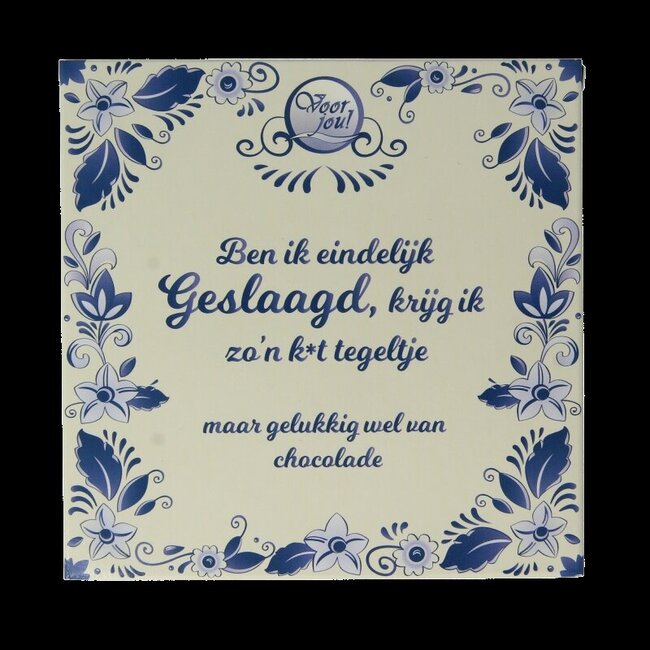 La tablette « Pour Toi ! Félicitations » apporte la solution. Cette barre de chocolat savoureuse et équitable, présentée sous la forme d'un carreau de faïence néerlandais typique orné d'un message joyeux, constitue le moyen idéal pour féliciter, remercier ou simplement offrir un sourire. Alors qu'il était parfois difficile de trouver un cadeau unique et marquant, vous offrez désormais sans effort un moment de pur plaisir.