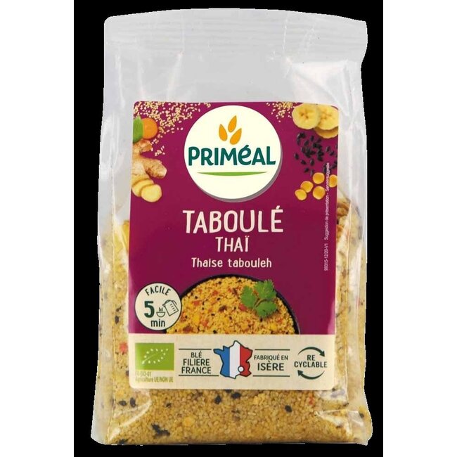 Découvrez le Taboulé Thaï Bio Priméal : une délicatesse exotique et biologique prête en seulement 5 minutes. Avec ses notes surprenantes de gingembre, de banane et de sésame, ce plat est une invitation au voyage culinaire qui booste votre vitalité.