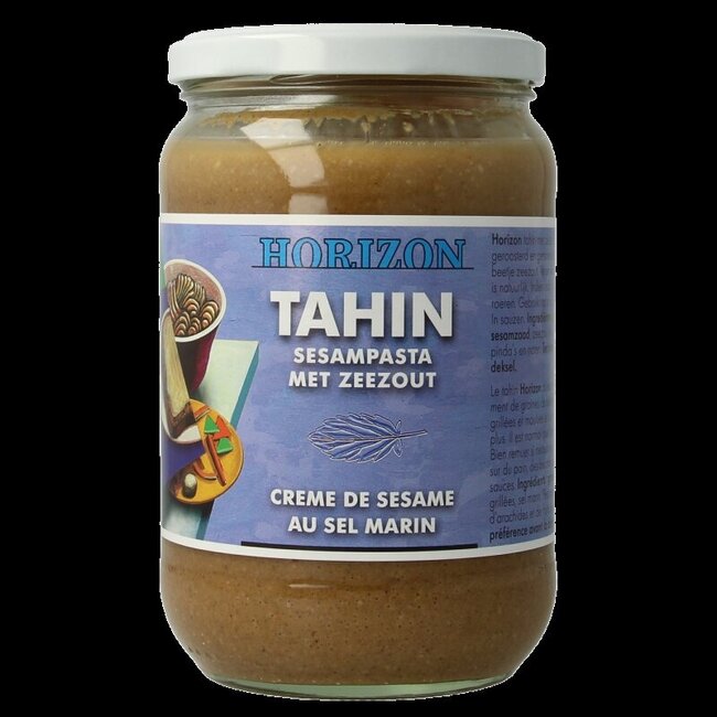 Le tahin Horizon au sel de mer est une purée de sésame biologique polyvalente. Ce produit offre une base nutritive pour diverses préparations culinaires.