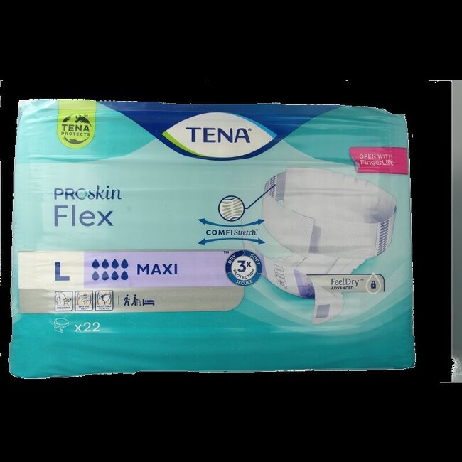 Tena Proskin Flex Maxi L offre une protection contre les fuites et les odeurs. La conception permet à la peau de rester sèche et de respirer. La ceinture Comfistretch assure un ajustement rapide et sécurisé. VitAdvice propose des produits validés par des experts, livrés sans plastique. Ce modèle convient à un usage familial.