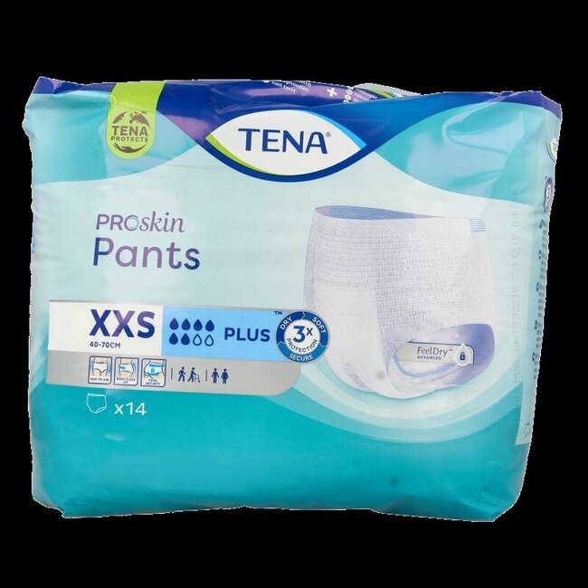 Des préoccupations liées à l'incontinence ? Le Tena ProSkin Pants Plus XXS offre une sensation de liberté. Bénéficiez d'une triple protection : maintien au sec, douceur et sécurité anti-fuites. Préservez la santé de votre peau grâce à une matière respirante, une neutralisation discrète des odeurs et un ajustement optimal. Retrouvez confort et confiance tout au long de la journée.