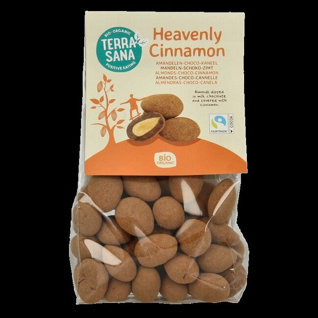Vous avez envie d'une gourmandise irrésistible, à la fois délicieuse et responsable ? Découvrez TerraSana Heavenly Cinnamon Choco Bio. Savourez des amandes parfaitement croquantes, enrobées de chocolat au lait biologique onctueux et de cannelle cassia chaleureuse. Un pur moment de plaisir venu de l'Espagne ensoleillée, 100 % biologique. Un instant de bonheur pour vous-même ou pour toute la famille. Faites un choix conscient, savourez intensément !