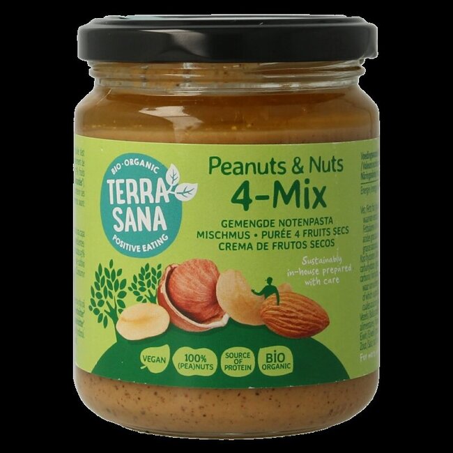 Vous recherchez une alimentation pure et saine, savoureuse et accessible ? Découvrez la purée de 4 noix biologique TerraSana : sans sel, composée d'arachides, de noisettes, de noix de cajou et d'amandes. Un choix judicieux, approuvé par des experts, pour la vitalité de toute votre famille. Emballage durable, par VitAdvice – votre partenaire santé de confiance.