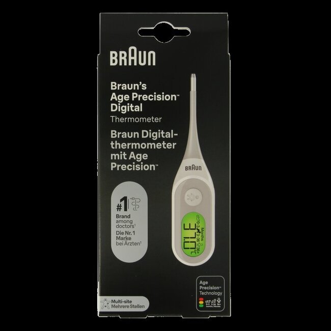 Le thermomètre numérique Braun PRT2000 apporte cette certitude. Ce dispositif, offrant une précision professionnelle et une mesure rapide en seulement 8 secondes, dispose de l'indicateur de fièvre exclusif Age Precision™. Il suffit de sélectionner la tranche d'âge (0-3 mois, 3-36 mois, 36 mois à l'âge adulte) pour que le thermomètre interprète instantanément le résultat via un code couleur explicite. Ce système élimine toute approximation et fournit un aperçu immédiat de l'état de santé de vos proches. Sa pointe flexible assure un confort optimal lors d'une utilisation rectale, buccale ou axillaire, et l'appareil est conçu sans BPA.