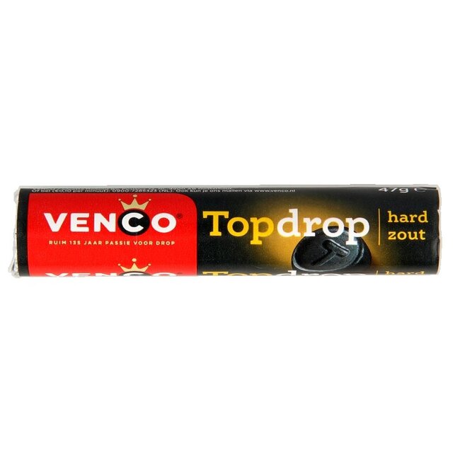Venco Topdrop Hard Zout propose une texture ferme et un goût salé intense. Cette confiserie néerlandaise est élaborée selon une recette traditionnelle, idéale pour une consommation personnelle ou à partager.