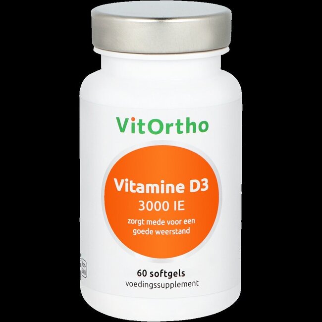 Vous ressentez une baisse de vos défenses immunitaires ? VitOrtho Vitamine D3 3000 UI soutient les os, les muscles et le système immunitaire, des éléments essentiels pour votre vitalité et celle de votre famille. Ces capsules molles, formulées avec de l'huile de soja sans OGM pour une absorption optimale, sont proposées à un prix jusqu'à 30 % plus avantageux et sont expédiées sans plastique. Choisissez VitAdvice : votre partenaire de confiance pour une santé optimale.