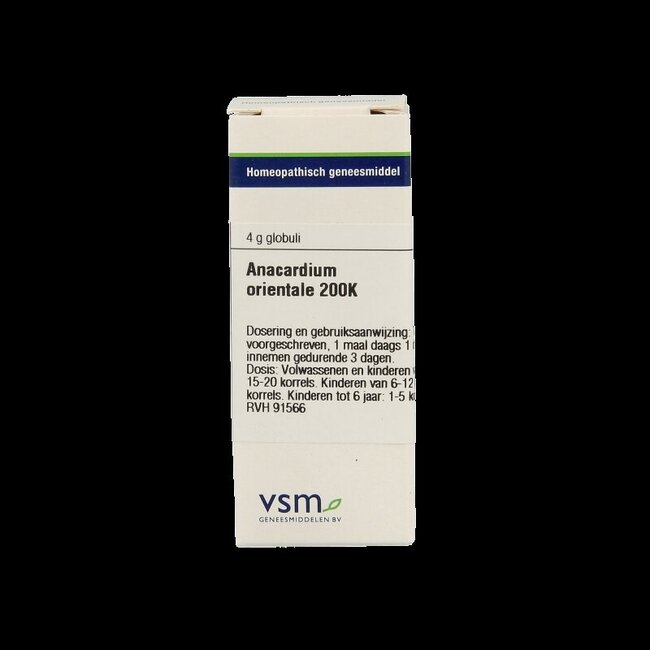 VSM Anacardium orientale 200K contient de l'Anacardium orientale 200K et du sucre de betterave (saccharose). Pour l'utilisation, laissez fondre les granules dans la bouche pour une absorption rapide. La posologie recommandée est de 2 fois par jour :