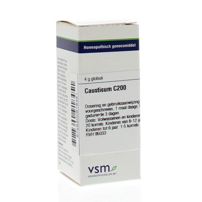 Ce médicament homéopathique contient du Causticum C200 comme substance active et du sucre de betterave (saccharose) comme excipient. Il n'y a pas d'indication thérapeutique spécifique. Laissez fondre les granules dans la bouche pour une absorption par la muqueuse buccale.