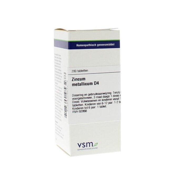 VSM Zincum metallicum D4 est un médicament homéopathique. Il est utilisé selon les principes de la méthode homéopathique, sans indication thérapeutique spécifique.