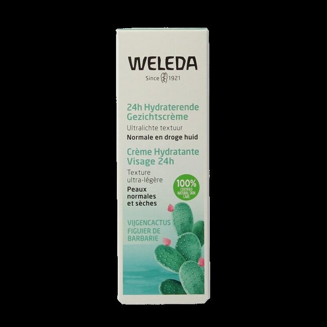 Dites adieu à la peau sèche et aux sensations de tiraillement. La Crème Hydratante 24h au Figuier de Barbarie de Weleda hydrate instantanément et jusqu'à 24 heures. Formulée avec du figuier de barbarie biologique et de l'aloe vera pour une peau fraîche et soyeuse. Sa texture légère pénètre rapidement et renforce la barrière cutanée. Un soin du visage pour toute la famille, expédié sans plastique, avec l'expertise de VitAdvice.