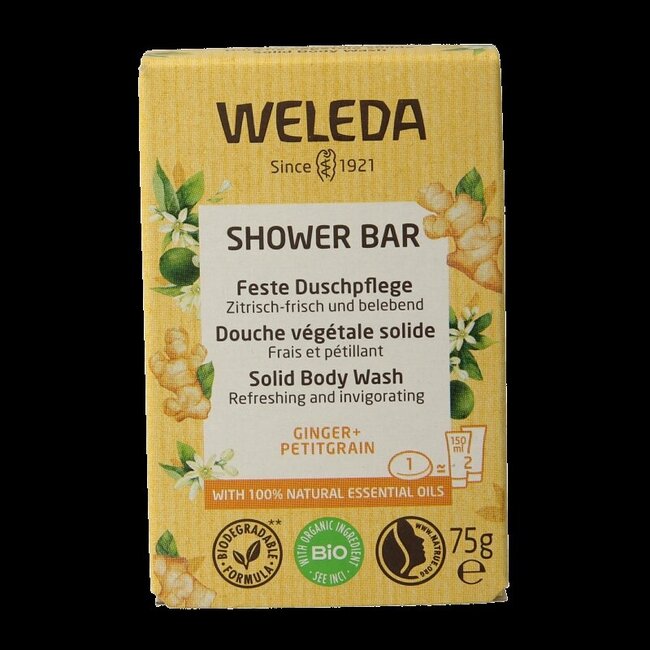 Rafraîchissez et prenez soin de votre peau avec le pain de douche Weleda Gingembre et Petit-grain. Ce pain biodégradable au beurre de karité offre un parfum 100 % naturel. Convient à toute la famille. Chez VitAdvice : jusqu'à 30 % plus avantageux et livré sans plastique. Un choix durable pour votre routine.