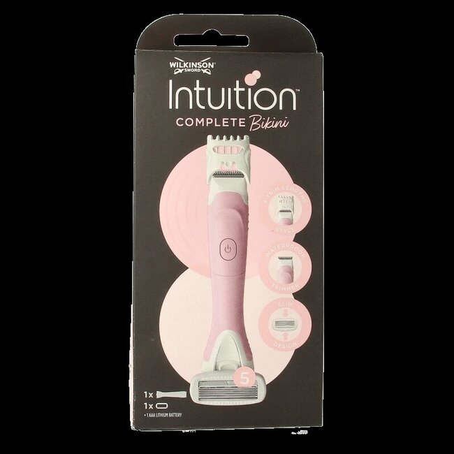 Le système Wilkinson Intuition Complete Bikini permet de tondre et de raser la zone du maillot. Ce dispositif 2-en-1 intègre un gel Skin-Protect à l'acide hyaluronique pour protéger la peau sensible. VitAdvice propose ce produit avec un emballage sans plastique.