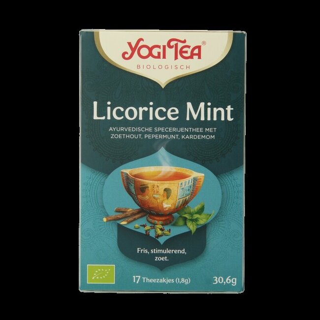 Yogi Tea Réglisse Menthe Bio propose une infusion à base d'herbes biologiques pour apporter rafraîchissement et équilibre. Ce produit est expédié sans plastique et convient à toute la famille.