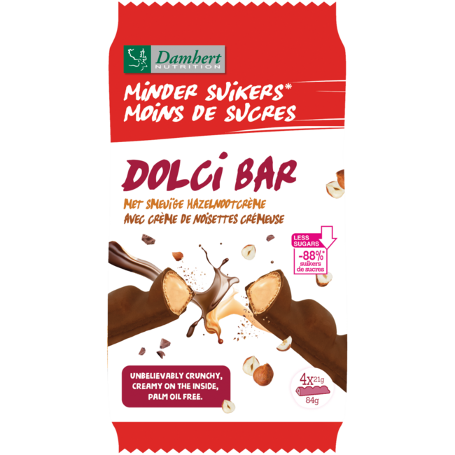 Desideri qualcosa di delizioso e allo stesso tempo responsabile? La Damhert Dolci Bar 'meno zuccheri' è il tuo snack intelligente e senza sensi di colpa. Goditi una cremosa nocciolata con molti meno zuccheri. Perfetta per tutta la famiglia! VitAdvice offre vitalità e valore, con spedizione sostenibile. Scegli il gusto senza compromessi.